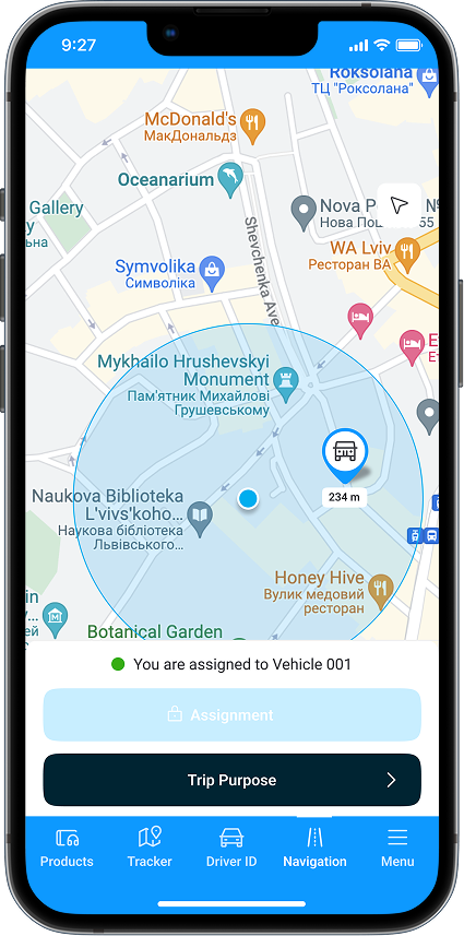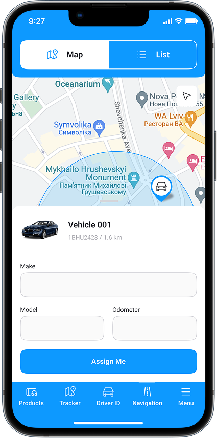 This feature streamlines vehicle allocation, facilitating efficient task assignment. Drivers can view nearby available vehicles on a map or list and assign themselves with a single tap, improving efficiency and accountability.