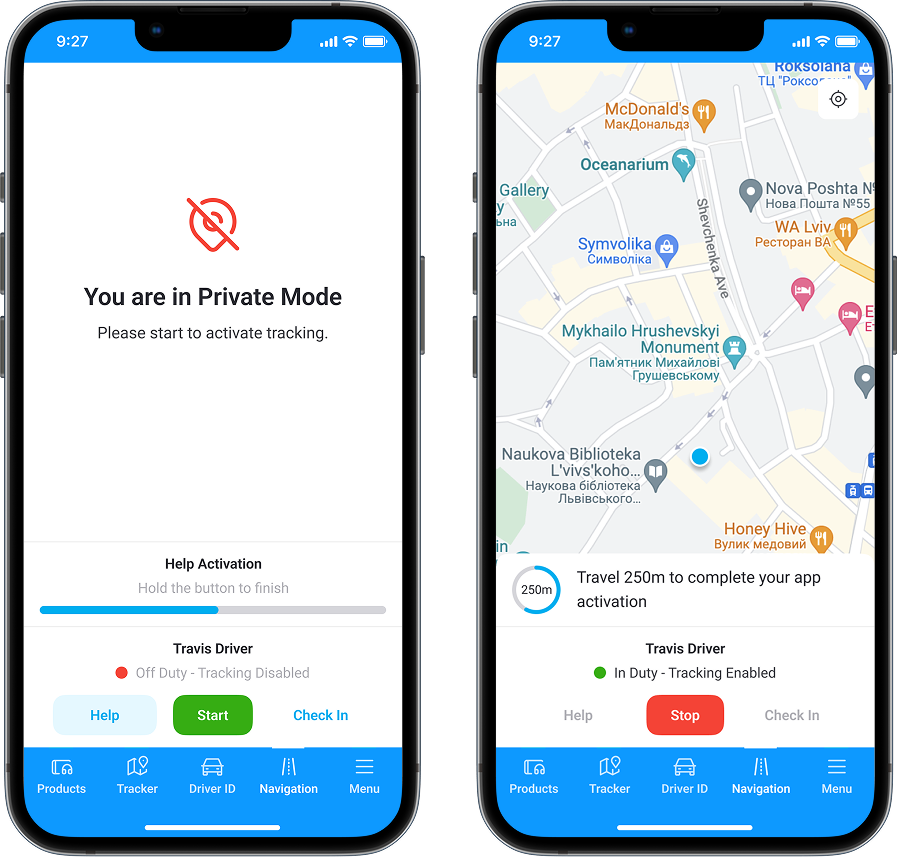 Duty statuses play a critical role in managing the app’s location tracking feature. When users switch to the “On Duty” mode, the app actively records and logs all location data. When switching to “Off Duty” mode, tracking automatically stops, prioritizing and safeguarding driver privacy.