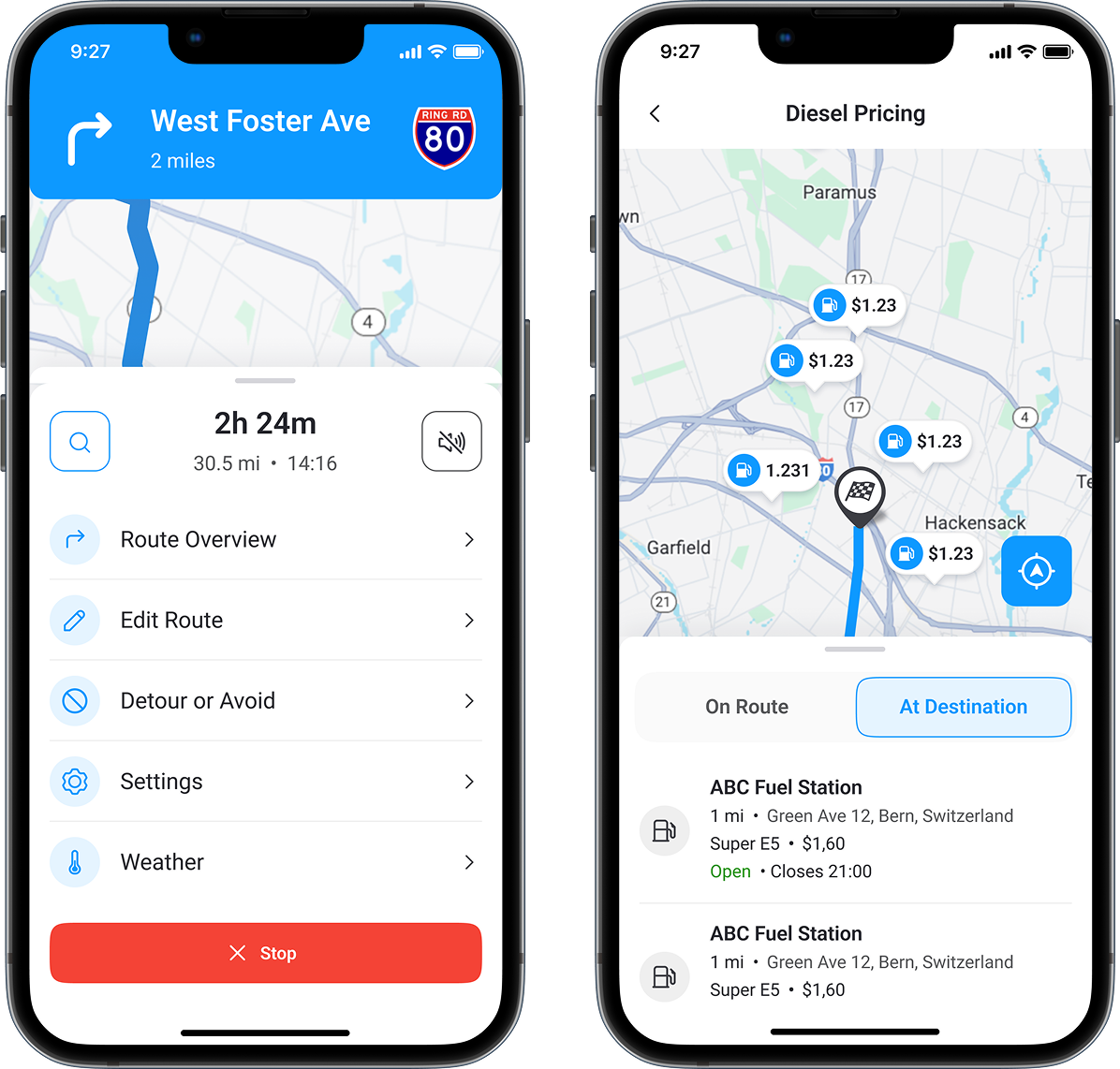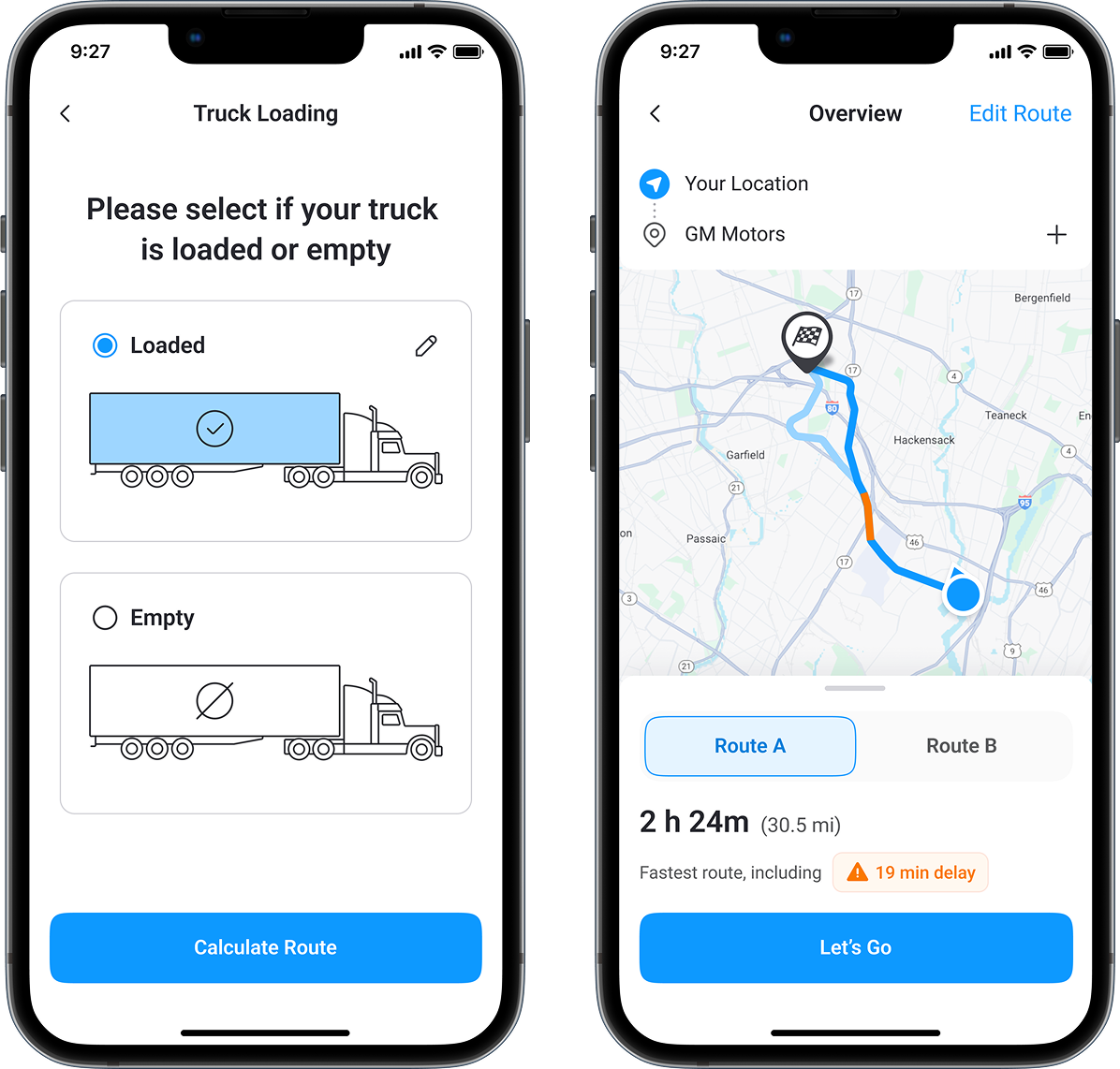 The designer analyzed other leading navigation and fleet management apps to understand best practices for readability, interaction patterns, and information hierarchy.